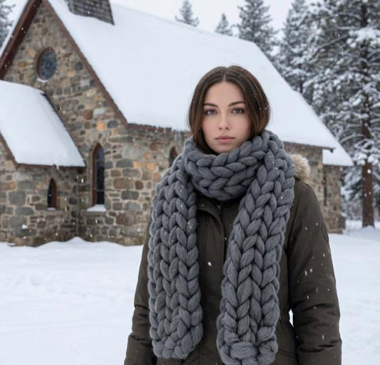 Super Chunky Scarf Mammoth Wool Charcoal Grey Cosy Cowl Free Size NK8