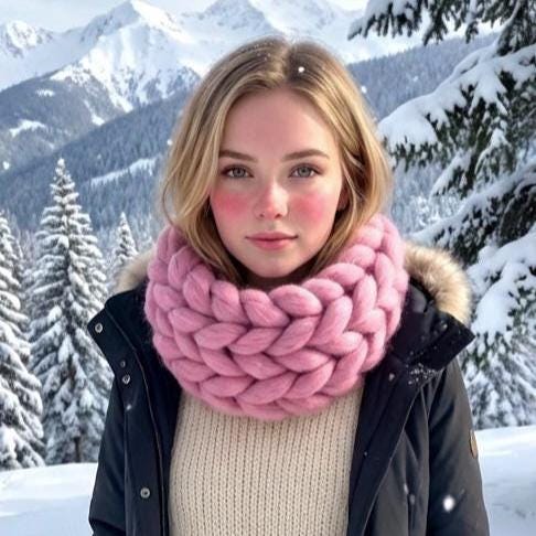 Super Chunky Snood Neck Warmer Mammoth Wool Pink Cosy Scarf Cowl Free Size NK6