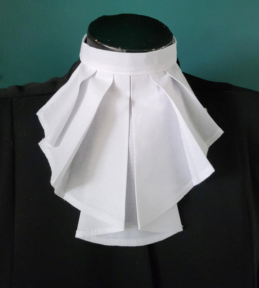 White Cotton Jabot Cravat Pleated Neck Frill Victorian Steampunk Wedding Whitby Larp Gothic Theatre Costume Races Ascot N31