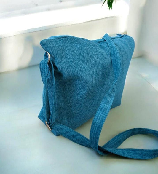 Turquoise Blue Velvet Chenille OOAK Shoulder Crossbody Bag Fully Lined With Zip Travel Festival BA1
