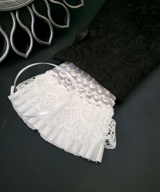 White Lace Wrist Cuffs Ruffled Lace Goth Whitby Victorian Style Larp Fancy Dress Gothic W9