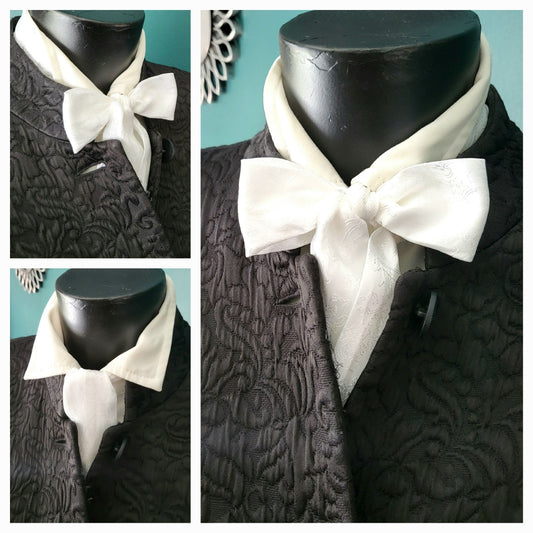 White Satin Paisley Self Tie Skinny Cravat Neck Scarf Multi Way Steampunk Wedding Pussy Bow Theatre Costume Victorian Whitby N3