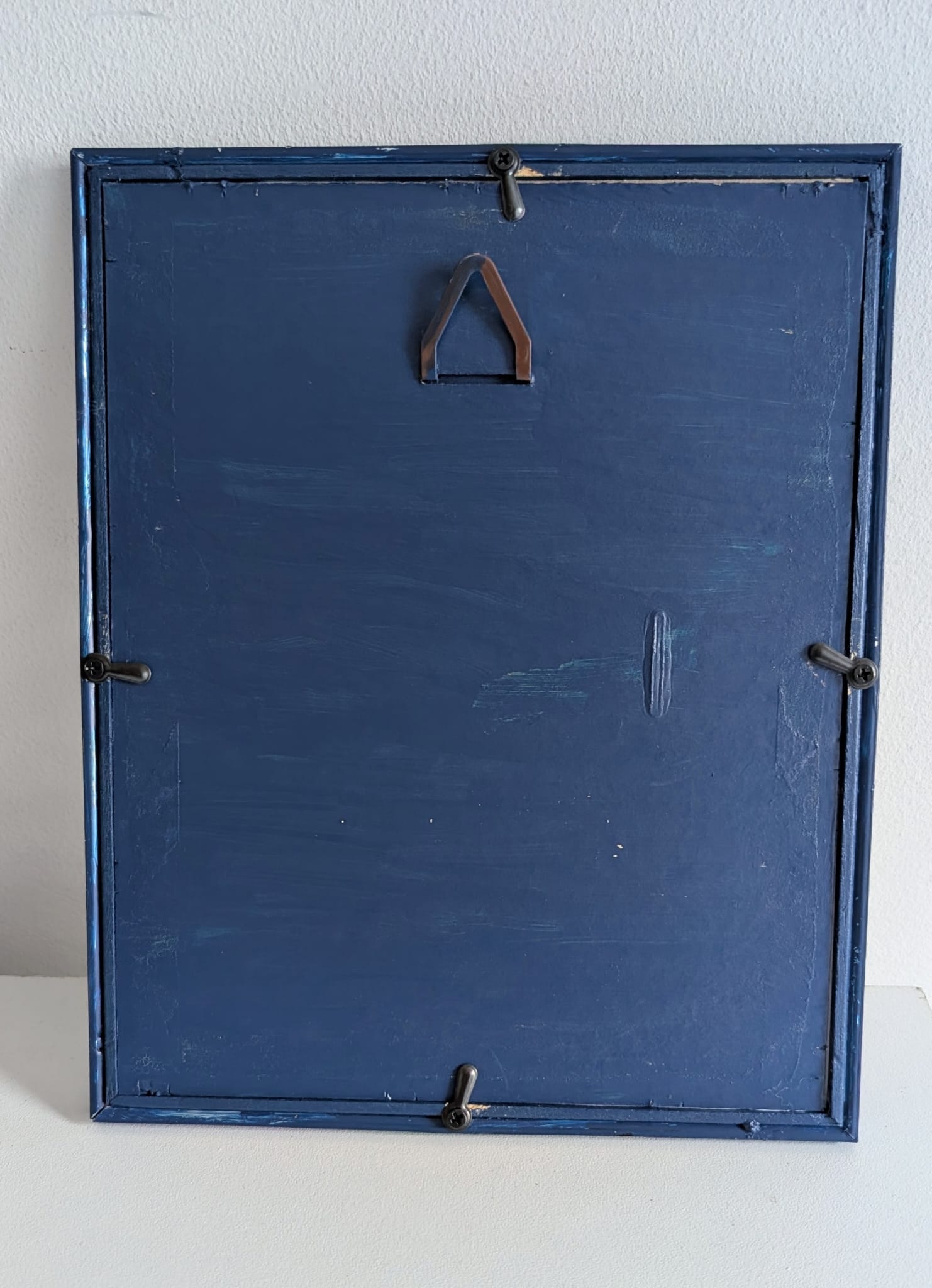 Metal and wood wall hanging photo frame in Blue.