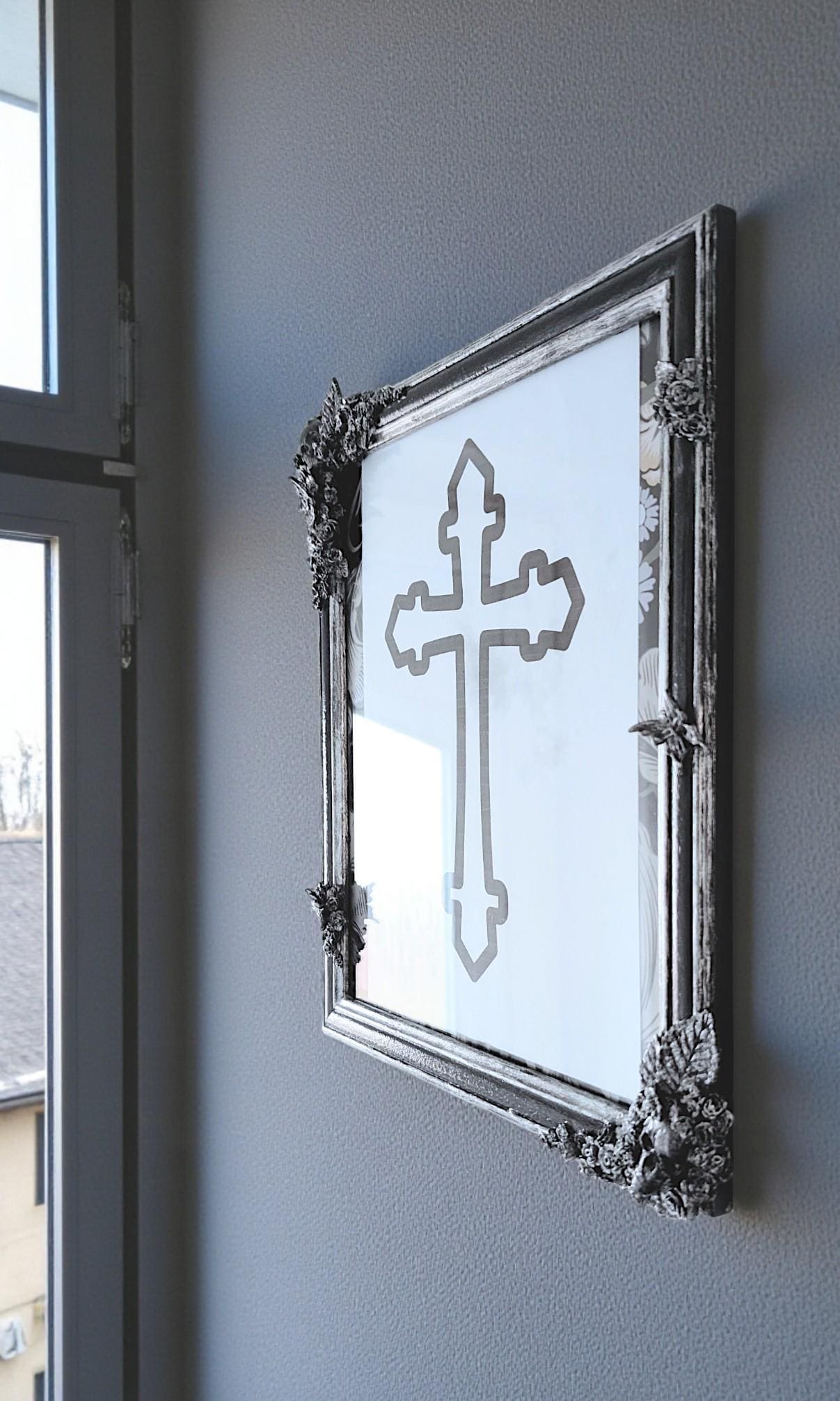 12 x 10" Black + Silver gothic portrait wall hanging photo picture frame Art Certificate display. Skulls, flowers, roses & butterflies. gift